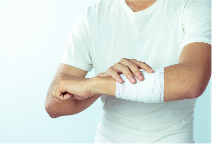 日常的な切り傷・擦り傷・やけどなどの外傷の処置、粉瘤などの皮ふ表面のできものの切除、手術創のケロイド、タコ、ウオノメ、巻き爪などの診療、外科的処置を行っています。